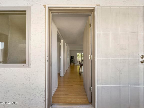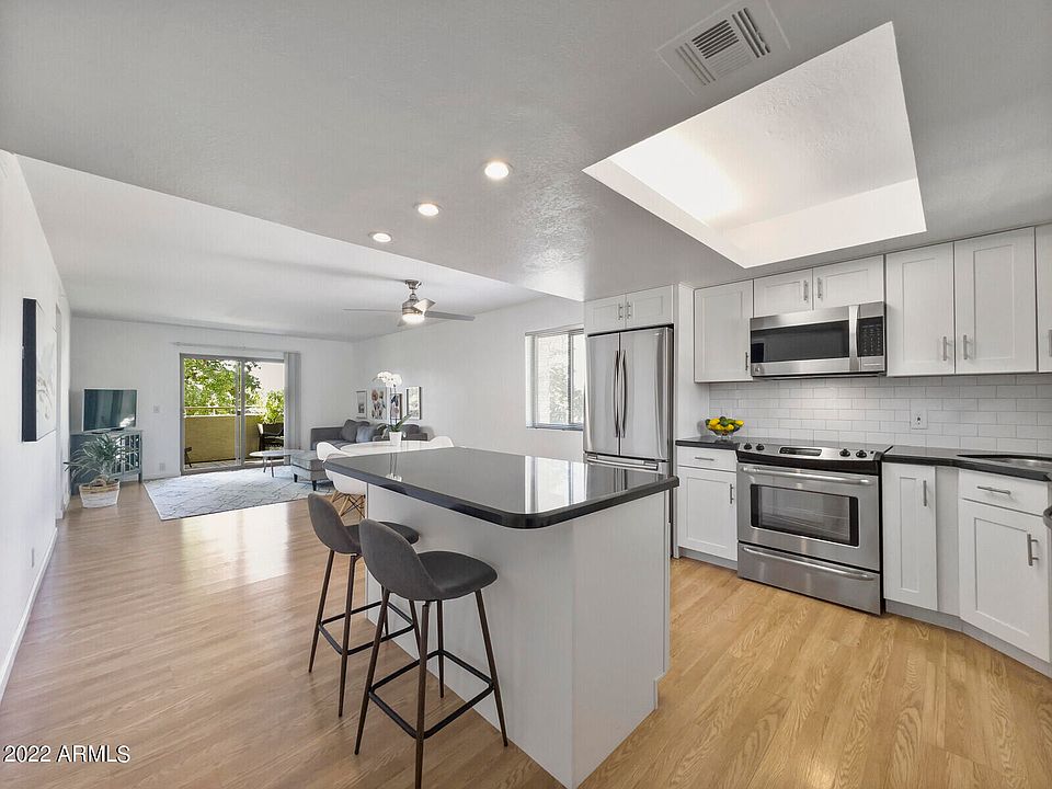 Welcome to this beautifully updated 2 bed, 2 bath corner unit in Las Casitas II! Upon entering this lovely condominium home, you will immediately experience the light, bright open feeling throughout & will be beckoned to your own personal sanctuary. You'll love the chef's style kitchen offering SS appliances, granite counters, subway tiled backsplash, white shaker cabinets and a center island. Both bedrooms feature walk-in closets and the Primary bedroom has patio access and a full bath. The sliding doors open to the private covered patio, where you can relax & enjoy the sun kissed Arizona lifestyle! NO neighbors behind and the greenbelt/walking path is just steps from the front door. Also walk to Stone Creek Golf Course & soon to be NEW ''PV RE-IMAGINED''. Easy 51/101 access. A MUST SEE!