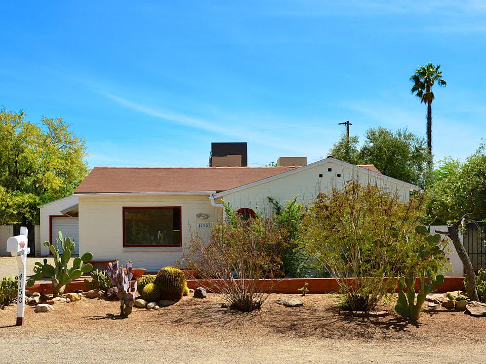 This Mid Century Modern home is located in desirable Poet's Corner neighborhood. Open, bright and spacious with Great Room, updated kitchen, plenty of storage in kitchen, gas stove, refrig and dishwasher. Two huge bedrooms, interior freshly painted, extra room for office or den. Easy care front yard, garage, large enclosed backyard with covered patio and extended contrete patio. Just minutes to Randolph Park, Downtown and UofA, shopping and public transportation. HVAC system replaced in 2013, Washer/Dryer included, fountain on Patio does not stay.