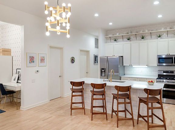Spacious 3 Bedroom, 2 Bath located in the heart of Buena Park. The beautiful entryway opens up into an open living room and dining room with 12-foot ceilings. Recently updated kitchen with white cabinets, new white quartz countertops, w/ new SS appliances w/double oven and huge walk-in pantry. Refinished wood floors, double-sided wood/gas burning fireplace recently tiled. Large Master bedroom w/ brand new carpet and a large walk-in closet. Stunning Master bath w/ walk-in tub. Updated guest bathroom with new tile and vanity. Huge laundry room with side by side washer and dryer with plenty of storage. Entire home painted, updated light fixtures, new water heater. This building was designed by award-winning architecture firm Booth Hansen. Parking included. Steps away from Wholefoods, Target, restaurants, dog park, library, Buena Circle playground, Red and Purple line. Move-in ready!