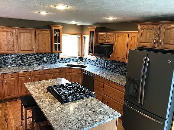 Lovely 4 bedroom, 2 1/2 bath home on almost 2 acres with an attached three car garage. Master suite includes master bath with double sink, jacuzzi tub, private shower, and his and her walk-in closets. Second full bathroom features a double sink and private shower room. First floor features a large great room with double sided glass fireplace between the living room and large office/den. Newly remodeled kitchen with natural oak floors, tile backsplash, granite countertops and island with double GE ovens. All appliances GE and slate finish. Nine hundred of the 3100 square feet of living space is featured in a completely finished walkout basement with fourth bedroom and built in bar. Gorgeous home on a private quiet drive in Olivet. Please call (517) 231-3101 or (517) 410-4103 for more information.
