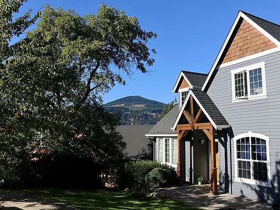 Large Craftsman 5 bed 2.5 bath home in the desirable Summitview neighborhood on Hood River’s sought after Westside. Fully fenced, park-like backyard with mature trees on .34 acre lot, complete with custom treehouse and large elevated deck with hot tub. Oversized windows and high vaulted ceilings fill this home with natural light, creating an open welcoming feel. Large primary suite features vaulted ceiling, walk-in closet, en suite bathroom with double sinks, jetted soaking tub, separate shower and private entrance to back deck. Huge bonus room with cinema quality theater with 4K 3D projector and built in surround sound. Gas fireplace, range and hot water heater. In-ground sprinkler system with irrigation rights. Extra deep 3 car finished garage and partially finished basement with built in storage area provide plenty of space for storage and all your gear. Close to downtown, waterfront, schools, post canyon biking trails and all that the gorge has to offer. 1.5% buyer’s agent commission allowance.
