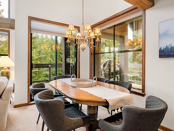 #17 Northern Lights is a highly desirable end unit boasting mountain and valley views. Oversized windows enhance the level entry with an abundance of natural light. This distinctive floor plan is over 2070 square feet, with the primary bedroom in the loft level and three additional bedrooms on the lower floor. A spacious den lends itself to a fifth sleeping when entertaining friends and family. The open kitchen, living and dining area offers impressive, vaulted ceilings, gas fireplace and access to a large covered deck. There is an opportunity to develop approx. 880 sq ft. allowing you to meet your family's needs for years to come. Northern Lights has it's own ski in ski out trail from Whistler Mountain and is an easy walk to the Village and the Whistler Golf Course. 3D video available.