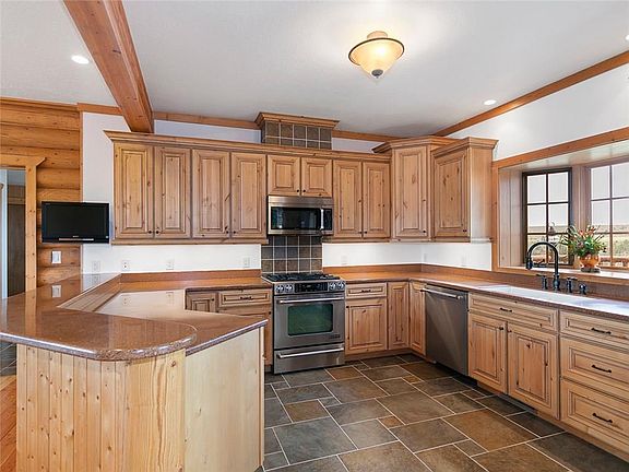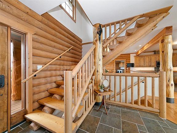 This is beauty at its finest, a loving reflection of all that is Montana. This majestic log home is nicely situated on over 5 breath taking acres. 4154 Sq Ft of living space, 4 bedrooms, 3 full bath, one half bath.3 car garage.Vaulted ceilings, with a walk out basement.Views for miles, in every room.Private Pond.Just off Buffalo Trail Rd. Hand hewn logs, soaring ceilings, knotty alder custom cabinets, garage with a work bench, xeriscape rock gardens for low maintenance and sustainable beauty.Flagstone pathway to the pond. Mosaic moss rock walkways, locally sourced.Upgraded deck and patio, meticulously maintained.