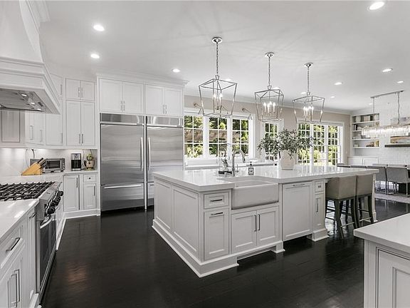 • Kitchen Features: Breakfast Bar, Eat-in Kitchen, View to Family Room, Kitchen Island, Solid Surface Counters, Other Surface Counters, Cabinets White, Wine Rack, Country Kitchen