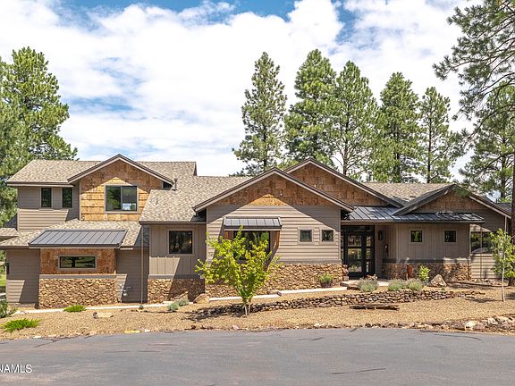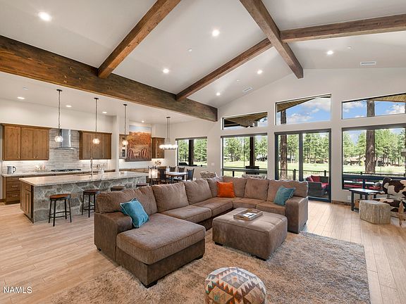 providing easy access to the back Patio featuring a Nat Stone Built-In BBQ & Fireplace, making it ideal for indoor-outdoor entertaining! The spacious primary bedroom & spa-inspired bathroom are accompanied by two additional Guest Suites, offering great views and their own private bathrooms and an additional living space provides extra space for friends/family and is equipped with a Kitchenette & Balcony featuring Peak Views! This Beautiful Custom Home has a ton of upgrades including a Custom made front door, Custom made Barn Doors & Barn-Wood accents, imported Poplar Bark siding & accents, a huge pantry and Foam insulation throughout. This Luxury home was thoughtfully designed to provide an abundance of natural light, serene views, clean lines and comfortable living spaces, making it the perfect primary residence or ultimate vacation getaway to enjoy all four seasons that Northern Arizona has to offer!!