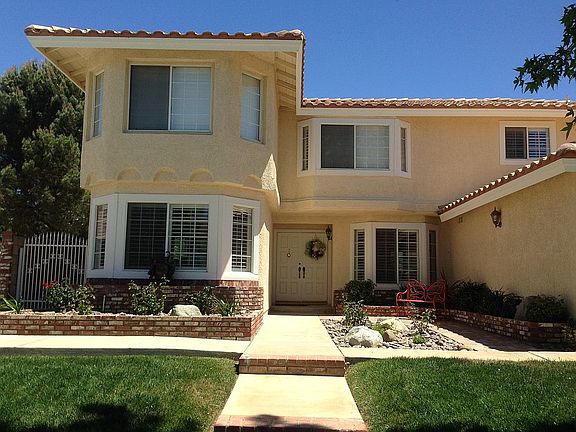This executive home is ideally located on a quiet cul de sac in the prestigious Estates neighborhood in Quartz Hill. The conveniently laid out kitchen features custom craftsman Juparana Colombo granite tile counter tops & backsplash, deep double Kohler sink and faucet, garden window, custom KraftMaid Kitchen cabinets that multiply storage, and a serving pass-through to the formal dining room. Separating the dining and family rooms is a beautiful built-in oak & glass china hutch and cabinet. 1st floor flooring is waterproof Acacia Luxury Vinyl Plank (LVP) with porcelain tile in the kitchen, laundry, and bath. The newly remodeled 1st floor 3/4 bath has all new top quality fixtures and features a tiled walk in shower with barn style frame-less sliding glass doors. Plantation shutters throughout the home help keep it cool in the summer & keep the warmth of the fireplace in the winter. The master suite has his & hers walk-in closets, 150 sq ft master bath with his & hers sinks in the 9 ft counter with a makeup vanity at one end, garden tub, separate shower w/ sitting bench. The finished insulated garage, offers extra lighting & outlets, built-in workshop, 60 feet of top quality steel shelving & two-part epoxy painted floor with clear coat. Gated RV access, 10'X24' custom built pool equipment & utility shed with power & lights. Utility shed features a 4 foot wide custom craftsman-made door for maximum access. The landscaped front & rear yards are irrigated with Hunter water-saving lawn sprinklers & a miserly drip system. The white triple-pane steel French doors in the formal living room open to the large covered back patio looking out on the garden area with three back-saving irrigated raised flower, or vegetable beds and a spectacular 16’ X 34’ PebbleTec pool and spa. An automatic pool cover, conserves water,minimizes maintenance, protects loved ones and keeps the solar heated water warm to enjoy for much of the year. Open & close the pool with the flip of a switch. The quiet, and energy efficient variable speed pool pump contributes to low summer time electric bills.