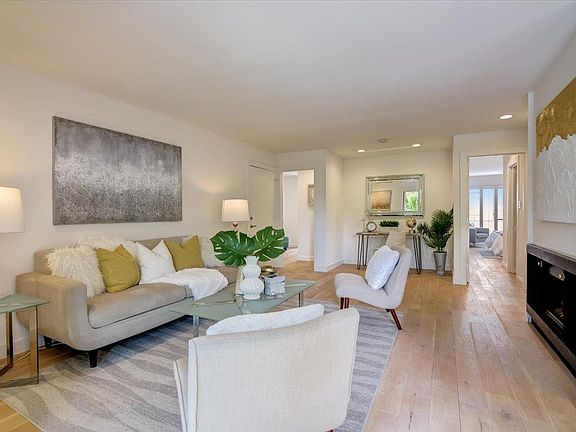 Style and flair abound in this COMPLETELY RENOVATED AND UPDATED two bedroom two bath condo in desirable Lauriedale community. This property feels like your own private oasis with its updated and modernized floor plan completed with permits in 2021. New solid wood flooring throughout elegantly combines a living & dining room w/ adjacent private patio, perfect for outdoor living looking over the greenbelt & pool. Remodeled kitchen w/ new SS appliances, modernized cabinets & countertops. Two en-suite bdrms includes primary suite w/ office space, renovated spa-like bath. 2nd bdrm w/ private bath, newly tiled shower over tub & large walk in closet. Features freshly painted interior, dual pane windows, LED lighting, deeded parking spot & laundry room right under condo w/ large storage room completes this homes charm. Resort style community with pool, walking trails, plenty of guest parking & Zoned for TOP RATED BRSSD SCHOOLS! Amazingly convenient to Hillsdale Mall, HWY 101 & more!