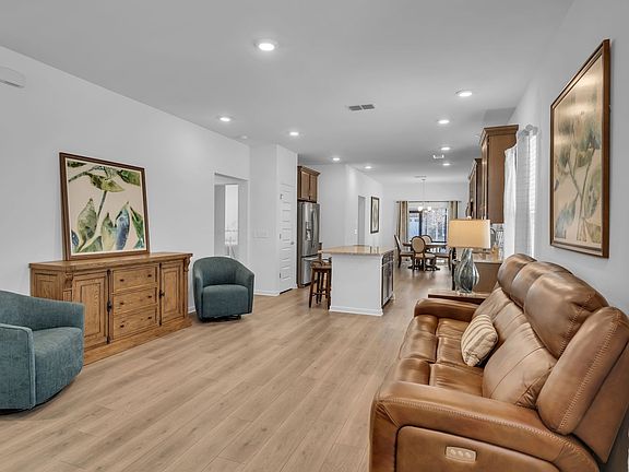 Front porch living in Magnolia Farms! This "shows like new" home boasts an open floor plan with lots of natural light and brand new carpet in the bedrooms. You'll find granite countertops, a modern backsplash, and stainless steel appliances in the spacious kitchen (with extra storage in the center island.) A tray ceiling in the primary bedroom opens up to the dual vanity en suite complete with separate tub and shower and generously sized walk-in closet; providing both comfort and convenience. This is the only available Finley floor plan in the highly desirable Magnolia Farms community with a screened in porch - perfect for entertaining! Additionally, take advantage of the attached 2-car garage for added storage and parking. Magnolia Farms has a community pool, playground and an abundance of green space.