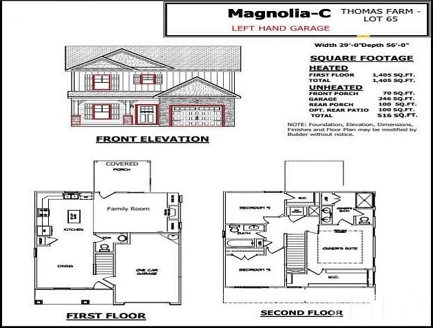 The Magnolia-C features 1405 sq. ft. with 3 bedrooms, 2.5 baths, and a single car garage. Open concept family room, kitchen, and dining. Front porch and a covered back porch. Located close to Fort Bragg and just a short commute to Lillington.
