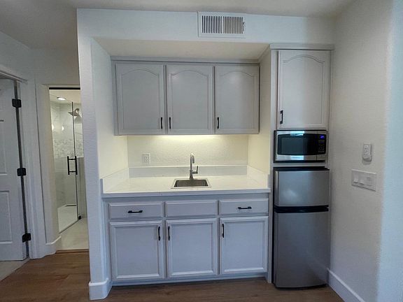 Recently remodeled 1bd/1ba studio+ ADU located less than 1 mile to the Agua Hedionda Lagoon, and only 2 miles to the beach! Apartment has it's own private entrance from a designated, off-street parking space, and two attached, private patios. Recent remodel includes quartz countertops, built-in efficiency fridge/freezer, built-in microwave, recessed and under-cabinet lighting, remote-controlled ceiling fan, fresh paint, and new tile, carpet and luxury vinyl plank flooring. No stove or oven, ideal for someone who doesn't like to cook. The unit also includes two private, fully fenced patios totaling an additional 150sq ft that can be used for storage, gardening or lounging. Currently no laundry access, but there's a great laundromat only 0.8 miles away. **On-site laundry access is a feature to be added to this apartment very soon.** Seeking 6 month - 1 year lease. Will consider 1 small pet with additional security deposit and monthly pet rent. Water, gas, electricity, and garbage included. East side of unit shares a wall with the main home. Owners live on-site. Closest cross streets: Tamarack Avenue and Park Drive. Rent includes utilities: water, garbage, gas, and electricity. Tenant provides own cable/wi-fi. Dedicated off-street parking space. Ideal for one person with occasional guests. No smoking or vaping on property. 6-month or 1-year lease.