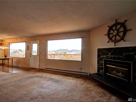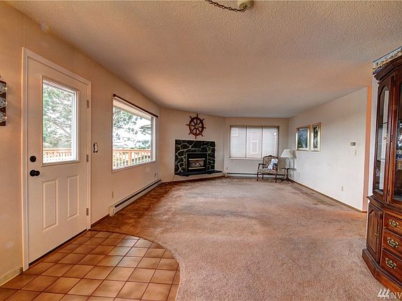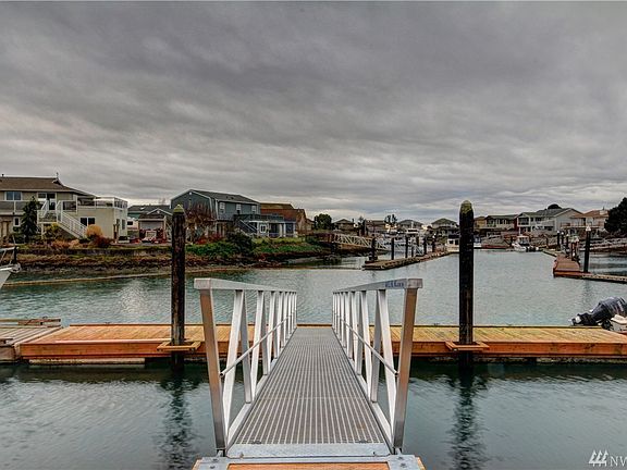Lovely Sandy Point property with 50 ft dock! Don't miss this 1,709 SF home with amazing views of Island, canal & mountains. Efficient floor plan with open kitchen & living room with fireplace & large windows to maximize the view. Nice large multi-purpose room, could be family room, rec room, workout room, bonus room or room for additional bedrooms. Large utility room & shop/storage room on main level allows for plenty of extra space. Relax on the back deck while enjoying the amazing views.