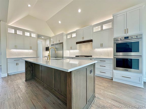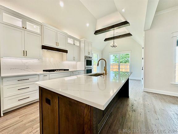 Introducing an absolutely breathtaking new construction home, and as of 8/16/2024 Builder is including a walk-in Saferoom / Storm Shelter! This New home is in the desirable Sunset Hills addition and one of the best in the area! This home features a chef's kitchen, with a double-sized side-by-side refrigerator, a Butler's pantry, a five-burner gas cooktop, and double convection ovens. Large windows throughout the home seamlessly blend indoor and outdoor spaces, welcoming lots of natural light. One of the standout attributes of this home is its exceptional lighting design. With accent lights adorning the beams, kitchen cabinets, and under-cabinet spaces, along with thoughtfully placed recessed lighting, every room is bright and invitingno dark corners here! This thoughtfully designed floor plan includes two bedrooms on the main level, which can serve as a master suite and an office, along with a formal dining room. Beautiful hardwood floors grace most of the downstairs and the upstairs hallway, adding warmth and elegance. The expansive game room offers stunning views of the neighborhood pond complete with a fountain, the upper floor also features four additional spacious bedrooms, one with a private bath. Outside, the patio is pre-wired for your television, and both the garage and backyard are equipped with 220 wiring for electric vehicle charging and hot tub installations. The property boasts a sprinkler system, and the attic features a radiant barrier to keep it cool. Soundproofing in the game/media room helps to dampen the sound. The recently installed 8-foot full privacy fence adds to your comfort and security. This home is brimming with upgrades and thoughtful details. You simply must see it to appreciate all this home has to offer! Plus, you'll enjoy easy access to community amenities such as a pool, park, and tennis courts just down the street. Don't miss the opportunity to make this stunning home your ownschedule a visit today!