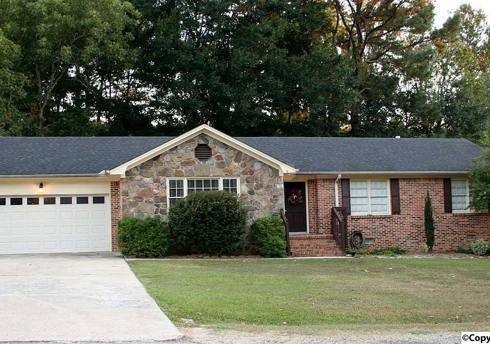 This spacious brick & stone family home is located in an established subdivision in the heart of Southside. This 3 bedroom, 2 bath home features a living room, a family room, & a dining room/office. The living room is decorated with hardwood floors, a rock gas log fireplace, & a built-in computer desk. The dine-in kitchen is spacious & offers solid surface counters with black appliances & a pantry. The formal dining room is situated between the kitchen & the family room. 2 of the 3 bedrooms boast double closets & both bathrooms offer tile floors. Relax on the over-sized covered back porch while watching your babies and/or fur babies play in the shaded & fenced backyard.