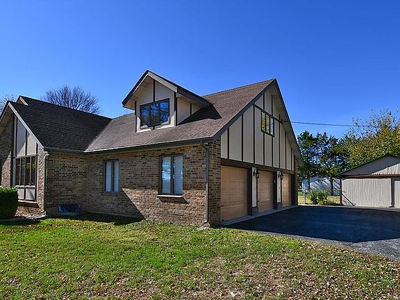 PRICE REDUCED FOR QUICK SALE! Amazing 1 1/2 story 3 car garage home with 3 bedrooms, 3 baths and an unfinished basement in Ozark wins first place in several categories including value, location, size and esthetics. First, this residential property is incredibly versatile as it can be zoned commercial, allowing you the ability to run a business in the comfort of your own home. A fresh planted hedgerow will soon have you tucked away in privacy. Only about a 1/2 mile off of J HWY, town amenities are conveniently close. Almost 2 acres of property easily accommodates an extra large fenced back yard, a detached 20x25 2 car garage and an additional 24x48 4 car shop, both with concrete floors and electric. Home's living space consists of a whopping 2,343 finished sq ft and 600 sq ft of unfinished potential. Double windows and sliding doors welcome natural light into home, accentuating the feeling of warmth created by a beautiful brick fireplace and wood flooring under foot. Special eye catching features include unique mosaic tiled risers and welded metal railing on stair case, matching decorative tile on kitchen bar, and tastefully designed wall art in dining room. Large kitchen has ample counter space and cabinet storage, tile backsplash, laundry closet and coffee station area with its own coffee pot filler! Generously sized living room leads outside to an uncovered deck. Spacious master bedroom has trayed ceiling and walk-in closet with built in shelving as well as 2 additional closets. Second bedroom has access to back covered deck as well as a Jack and Jill style bathroom that doubles as a guest bath. Bedroom upstairs is big and bright with large windows, 2 large closets and its own full bathroom. This is a one of a kind property you must see with numerous plusses and possibilities!