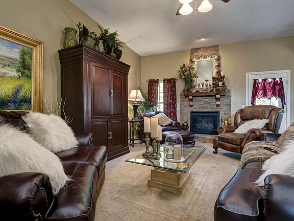 Under Contract - Open House Feb. 19th Canceled. Prepare to be impressed inside and out with this beautifully landscaped home with brick front & stone accents. This spacious approximately 1,752 square foot home offers a great eat-in kitchen, formal dining room, wet bar, a wonderful living room a cozy stone gas-log fireplace, 3 bedrooms and 2 baths and a 2-car garage. Interior amenities include hardwood & tile flooring, raised ceilings, distinctive fixtures and a warm, inviting decor. All appliances stay, including refrigerator, washer and dryer. You will love the park-like setting of the fenced-in back yard, lush landscaping, mature trees and corner lot.