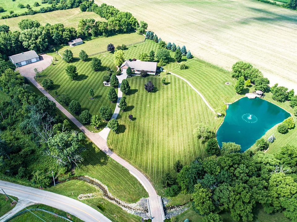 Stunning 4/5 bedroom, 4 full bath brick home on private 6.6 acres w/stocked pond & 2 barns. Great room w/vaulted ceiling & FP. Updates throughout home incl kitchen w/granite counters & new appliances. 4 seasons room off breakfast room. Formal dining. First floor master suite. Finished LL w/5th bedroom/study, huge family room & kitchen. 5000 SF home