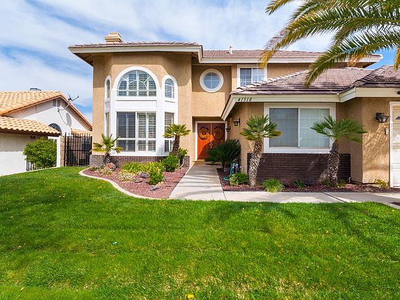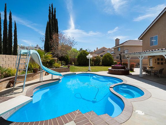 Just in time for summer! This beautiful Quartz Hill POOL home offers 4 bedrooms PLUS a loft, 3 full baths and 2,730 sq ft of living space! Upon entry you will be delighted by the tall ceiling creating an open and bright formal living/dining area with a fireplace, window shutters and gorgeous hardwood flooring. The kitchen has been remodeled and offers granite countertops, stainless steel appliances, custom tile flooring and plenty of cabinet space. The family room is adjacent to the kitchen and offers a fireplace, wet bar and surround sound speakers. One bedroom and full bath downstairs. Continue up the curved staircase to the master retreat with vaulted ceilings, dual walk-in closets, large spa-like tub and a separate shower. The backyard OASIS has a sparkling pool and spa complete with a water slide and diving board! The covered patio provides great shade with outdoor ceiling fans and extra lighting. HUGE paved RV access that doubles as a basketball court! Truly a MUST SEE home!