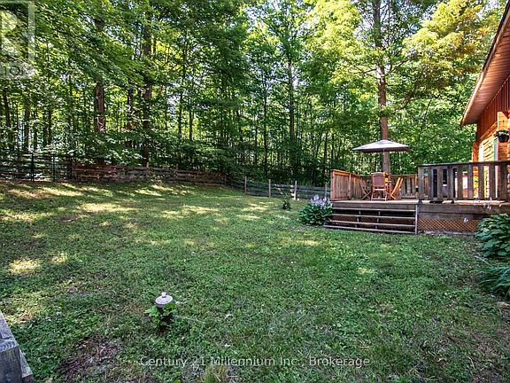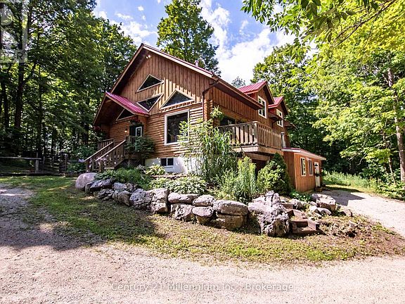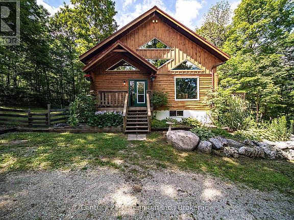 Discover this large 4-bedroom, 3-bathroom log home on a private 4.5-acre property situated on a quiet street surrounded by mature trees. Step inside to a bright, open-concept main level featuring vaulted ceilings with exposed beams and sunlit living and dining areas. The kitchen is ideal for family gatherings, and the main floor includes three bedrooms and a 4-piece bathroom. The upper-level loft serves as a private primary suite, complete with a 3-piece ensuite featuring a jet tub. A spacious second family room can function as a games area or home office, offering flexible living space. The full walk-out basement extends your living area with a separate entrance. It includes two storage rooms, a recreation room with a pool table, a 3-piece bathroom with a shower, a laundry/utility room, and a root cellar, making it suitable for multigenerational living or rental income. Entrepreneurs will appreciate the impressive 650 sq. ft. commercial kitchen addition, fully inspected and approved for a catering business (zoned for home occupation). Equipment available for purchase separately. Enjoy peace and privacy from three decks overlooking the fenced backyard, which features a quarter-acre garden, fire pit, forested trail, and meadow path. The barn is ready for hobbies or livestock, complete with hydro, water spigot behind barn, three stables, storage/workshop space, and a two-acre fenced pasture with gates. Recent updates include new windows, a refinished exterior, a metal roof, new doors, central air, mini-split heat pumps, and a sump pump. Outdoor enthusiasts will love the nearby 300-acre Saugeen Conservation Area and Townsend Lake public access just three minutes away. Markdale and Durham are only 15 minutes away, providing access to in-town amenities. Whether you dream of raising a family, starting a hobby farm, or running a business from home, this property is move-in ready! (id:41440)