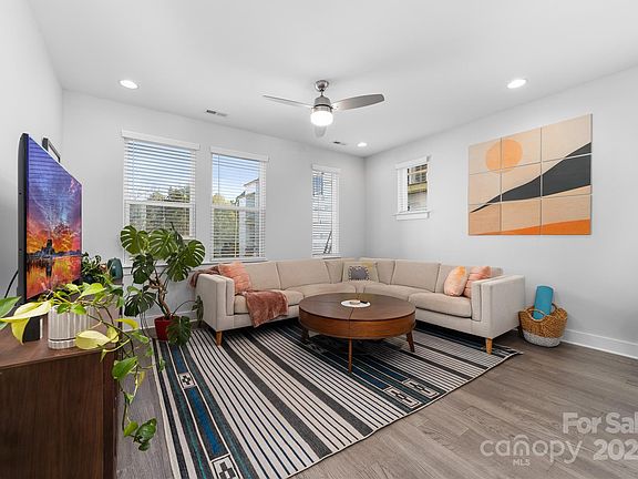 Welcome to this uber sleek four-story townhouse in Charlotte's Cotswold Area. Practically new, it boasts a spacious two car garage and a fourth-floor rooftop terrace with great views. Inside, find an bright open-concept main floor with a modern kitchen and vinyl plank floors. Upstairs, the master suite offers a luxury bath and on this level is a second bedroom and bathroom. The top floor delights with a rooftop retreat and flex space, it is currently being use as a theater(screen and projector stay with purchase) could also be used as an office, bedroom or bonus room. Enjoy urban living with nearby amenities. Welcome home to modern comfort and convenience in the heart of Charlotte.