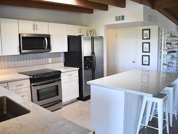 Located in over an acre in desirable Flecha Caida Ranch estates, this charming burnt adobe ranch home combines old world charm with modern architectural details. Free flowing floor plan includes 3 spacious bedrooms with walk in closets, 2 bathrooms, kitchen opens to great room. Features include: New professionally designed kitchen, large island, quartz countertops, new cabinets, stainless steel appliances, remodeled bathrooms with subway tile and marble mosaic tile floors, custom marble thresholds/shelves in showers, marble vanity in Master Bath, barn doors, concrete floors, gas fireplace. Original wood-beam ceilings. Skylights. North/South orientation. Expansive covered patio with custom wrought iron patio fencing, landscape lighting. Sparkling pool. Zoned for horses.City and desert views