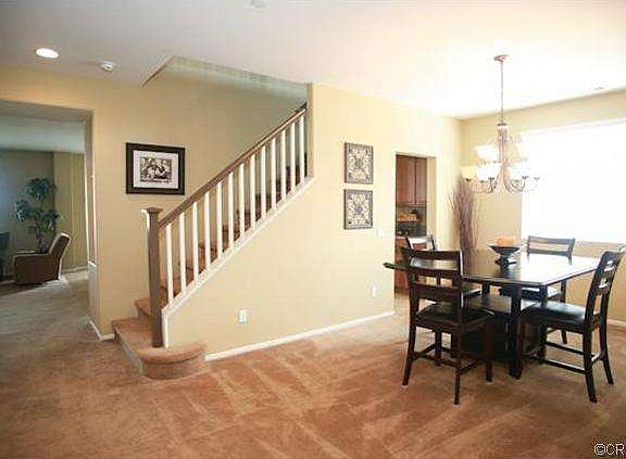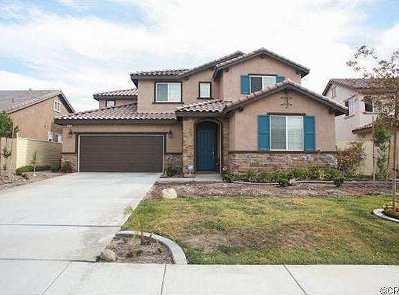 The feel of Tuscany at Alberhill. Cul de sac. Exterior features include stucco & stack stone. Tile entry with downstairs bedroom & full bath. High ceilings throughout. Formal dining room & breakfast area. Tile & carpet throughout. Open kitchen, maple cabinets, granite counter tops, recessed lighting & island with stainless steel appliances. Window blinds throughout. Family room with ceiling fan. Downstairs office/media room. Upstairs there's a large loft/bonus room with ceiling fan. Washer & dryer room is upstairs. 3 bedrooms upstairs including huge master bedroom with ceiling fan. Master bath with tub, shower, jack and jill sink, and walk in closet. Premium panoramic view lot overlooking the hills. Quiet backyard with stamped concrete, covered aluminum patio, and fully landscaped with automatic sprinkler system. Dual thermostats for up & downstairs use. Central air and heat. 2 car garage with 4 car length driveway. The front yard is also landscaped with automatic sprinkler system. The community includes club house, splash zone area and kiddy pool for kids, lap pool for adults with view of lake, park, and sidewalks for walking.