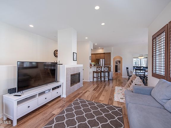 Stylish and upgraded 2+2 Paseo Del Sol townhome in great location! This beautiful home has a very desirable floorplan with a two car attached garage, spacious living room with windows all around, large dining area, remodeled kitchen, indoor laundry, two oversized bedrooms including a main bedroom suite with a private patio and two full bathrooms! The extra high ceilings and recessed lighting plus the open floorplan give this home a lot of appeal. There is a large covered patio off the living/dining room that has views of the mountains and nobody across or next to you. This home has a lot of upgrades including hardwood flooring, upgraded carpet, granite counters, stacked stone backsplashes, stainless steel appliances, custom shutters and window treatments, base moldings and more. Beautiful well kept gated community featuring a pool, spa and park. Located in the heart of Simi Valley, this home is very close to restaurants, all types of shopping, the city center with public library, public park and many other city amenities.
