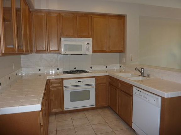 Largest unit in gate-guarded Paseo Del Sol complex. Original 4 BD 3Ba converted to 3 Bd 3 Ba with downstairs den/office by the builder. Upstairs features laundry area with hookups, and additional storage. The master bedroom bathroom has dual sinks, a large soaking tub with a separate shower, large walk-in closet. Two car attached garage with direct access. Stamped concrete backyard with built-in BBQ. Amenities include Pool Spa and tot lot. Walk to local shopping and grocery stores. No smoking May consider a small dog. Available Now