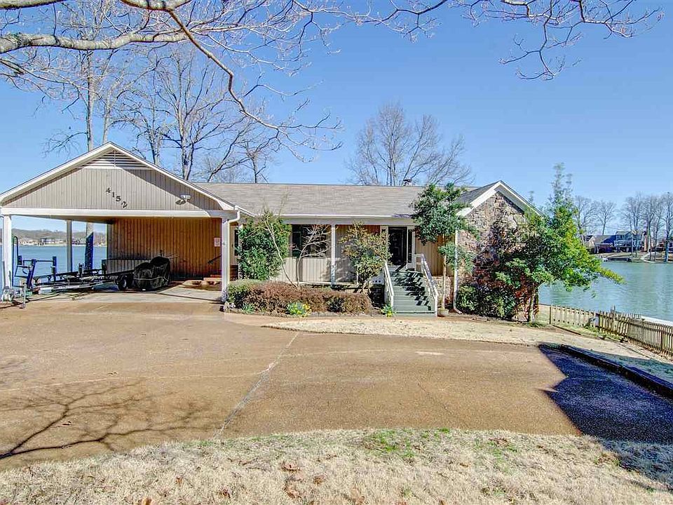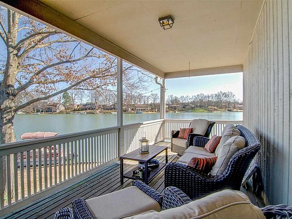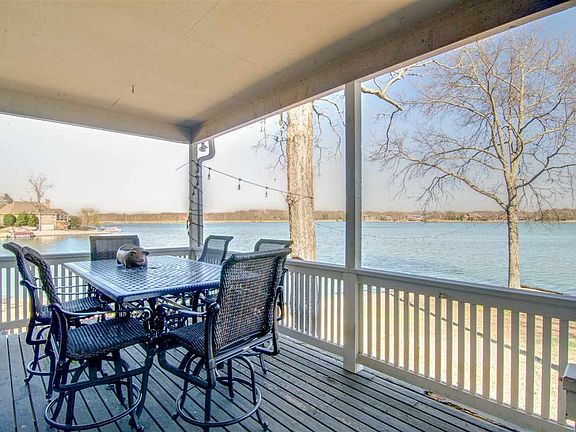 Beautiful Lakefront home. 4 bed, 2 1/2 ba. Renovations: wall has been removed to open kitchen and den. Ceilings smoothed, new granite, new Kitchen Aide Appliances, new nail down hardwood floors in the main living area, ship lap accents and new light fixtures! Large stone fireplace. One bedroom and man cave on the bottom floor and a Jacuzzi that stays. New carpet and paint in the basement. The most AMAZING flat lot that leads to your own boat dock and 160 feet of water frontage.