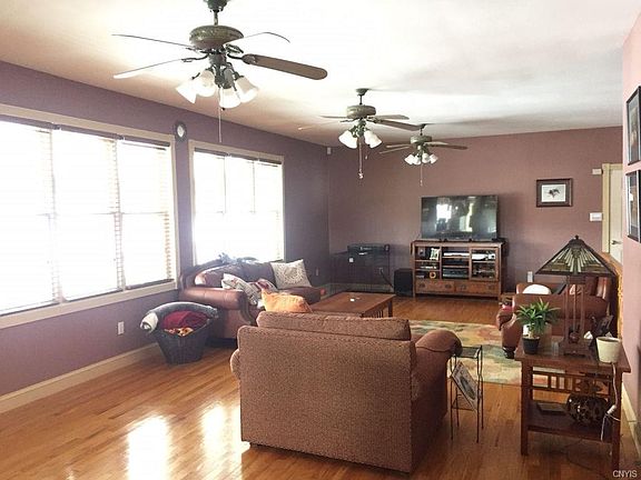This hidden gem is on a 55 acre lot with two barns for equipment and farm animals. The lot features three large hay fields totaling 18 acres, 15 acres of fenced horse pasture, and a small spring-fed pond. Secluded walking trails abound on this picture-perfect property. A modern Jacuzzi, patio and gazebo make for ideal parties and outdoor picnics. The manicured lawn and landscaping enhance the beauty of the house and land.