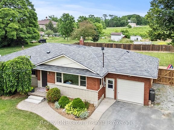 Experience the perfect blend of town and country living in this immaculate 3-bedroom, 1.5-bathroom bungalow, ideally situated in the charming community of Beamsville/Lincoln. This exceptional property offers a serene lifestyle with breathtaking, unobstructed views of the Niagara Escarpment, sprawling vineyards, and soaring bald eagles from your own backyard. Step inside to discover a welcoming and functional single-storey layout, perfect for families or those seeking the convenience of one-level living. The home features a single-car garage with convenient inside entry. A generous four-car driveway provides ample parking for residents and guests alike. The true gem of this property is its incredible outdoor space. The expansive backyard is a private oasis, offering a picturesque backdrop for relaxing, entertaining, or simply enjoying the stunning natural scenery. Imagine summer evenings spent watching the sky change colours over the vineyards, a view that is truly second to none. Adding to the tranquility, a beautiful treed ravine lies directly across the street, ensuring a peaceful and natural setting in your living room. While offering the peace and quiet of a country setting, this home is just moments away from the vibrant heart of Beamsville. Enjoy easy access to a variety of shops, restaurants, and local amenities. This prime location allows you to savor the bounty of the region, with world-class wineries and fresh farm markets right at your doorstep. Rear of yard freshly sodded after photos (2025), shingles 2022, main bath 2021, back deck 2024, AC 2025, freshly painted 2025, septic pumped 2024. One year Blanket Universal Home Warranty included which provides peace of mind in case of unexpected appliance failure. Contact for details.