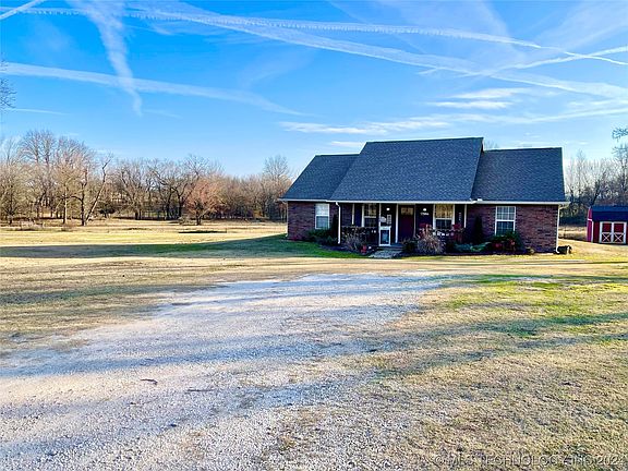 Peaceful 3 bedroom, 2 bathroom home with nearly 2 acres of land. Conveniently located close to town with a country/peaceful setting. Professionally landscaped flowerbeds and yard with newer above ground pool, deck, and storage shed included. Open floorplan with vaulted ceilings, unique brick floors in kitchen, stainless appliances all included, separate laundry room off kitchen, plus so much more!