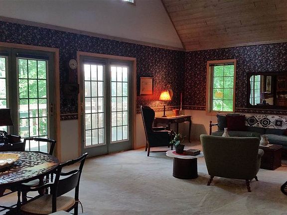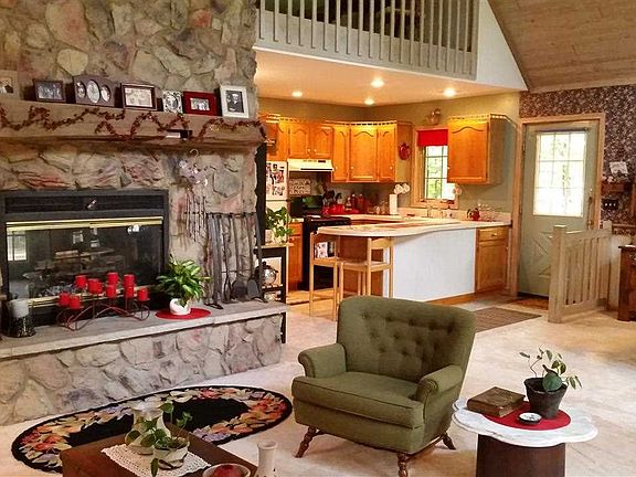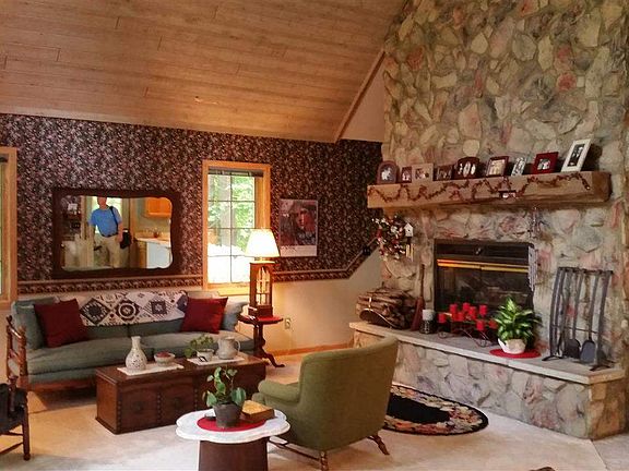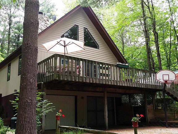 Custom Cedar modified A-frame home built by the reputable Bill Hope, nestled in a wooded lot. 2 bed 1 3/4 bath with vaulted cathedral ceiling in great room with beautiful cedar wood planking. Masterfully crafted floor to ceiling stone fireplace with heatilator and oak barn beam mantle. Spacious upstairs loft bedroom with overlook to living room. Space saving galley kitchen with oak cabinets and new gas stove. Over sized whirlpool tub in main floor bath with walk in closet. Office in basement has closet and built in bookshelves. 3/4 bath in basement with laundry in closet, plus an additional 7 x 7 storage room. Half of garage is currently used as screened in room and also has heat and air. Home is immaculately maintained and properly serviced annually. Home boasts special features such as Peach Tree windows, DuPont Stainmaster carpet, solid pine doors, Levelor blinds, & second drive. Home is centrally located between LaPorte and South Bend with easy access to 94 and the toll road.