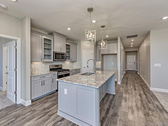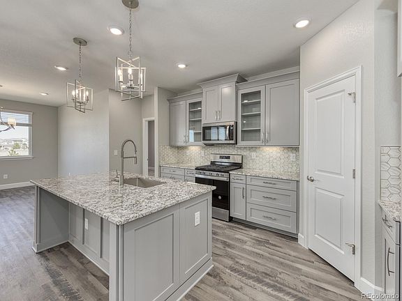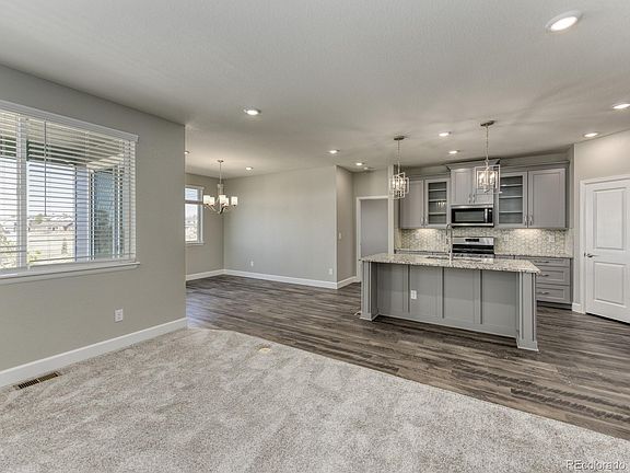Brand NEW energy-efficient home ready NOW! Corner lot. Covered deck. Stunning ranch featuring a fireplace, unfinished full basement, and a 5 piece master bath. Kitchen features gas appliances, glass front cabinets, under cabinet lighting, quartz countertops, painted gray cabinets, and EVP flooring. Master suite provides plenty of relaxation with spacious soaking tub, and more than enough closet space. Close to the Cherry Creek State Park and Southlands Town Center you won't have to go far from home, but when you do, there is easy access to E-470. Known for their energy-efficient features, our homes help you live a healthier, quieter lifestyle while saving you thousands on your utility bills.