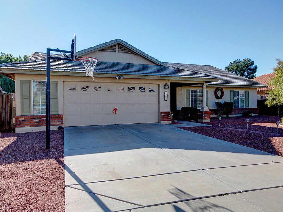This amazing home has 4 bedrooms plus a heated pool and spa. All tile floors and the Granite countertops in the kitchen are just a few of the upgrades. Come check out the resort like back yard at this house. Walking distance to the Elementary School and a close commute to the freeways make this a great family home.