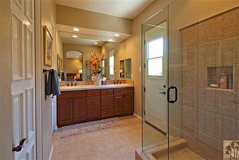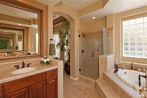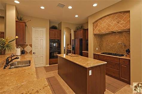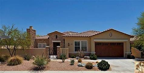Fabulous Tuscan architecture in small gated community of 94 single family homes in heart of Palm Desert. Close to El Paseo, the best schools,multiple venues of entertainment. Great room w/raised slate hearth/fireplace. Mirrored wet bar w/shelves. Island kitchen w/prep sink w/slab granite counters/bar. Solid core doors. Tile/main areas, carpet in bedrooms. Shutters/custom window coverings.Two master suites, casita w/separate entrance.(3.5 total baths)Burnished bronzed hardware. Den/4th br. Formal dining w/French doors to courtyard patio w/stone faced fireplace. Breakfast area w/built-in desk/drawers overlooks patio. Charming lushly planted East facing back yard w/AM sun all yr. Pebble-Tec pool/spa. Multiple ceiling fans/speakers. Covered/carpeted patio w/Built-in Barbecue on North end. Pebble-Tec pool spa.Water-saving desert landscape on this corner lot w/gated front courtyard entry makes care a breeze. Attached 2 car finished garage w/direct access into home and man door to side yd.