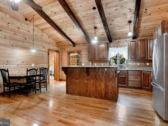 Beautiful Custom Built Log Home on 3.22 Acres Featuring Light Filled Interiors and Gleaming Hardwood Floors! Amazing Wood Walls and Soaring Cathedral Wood Beamed Ceilings; Living Room Embellished with a Pellet Stove; Eat-In Kitchen with Breakfast Bar, Ample Cabinetry, Sleek Stainless Steel Appliances, Cooktop, Double Wall Oven, Casual Dining Area; Primary Bedroom with Walk-In Closet and Full Bath; Two Bedrooms, Full Bath, and Arrival Center ; Laundry Room Complete the Main Level; Expansive Lower Level. The Exterior Features 2-Car Attached Oversized Garage with Additional Storage, Private Lot, Covered Front Porch, Play Area, and Backs to Trees. A MUST SEE! There is also a 24 acre tract on the market available for sale.