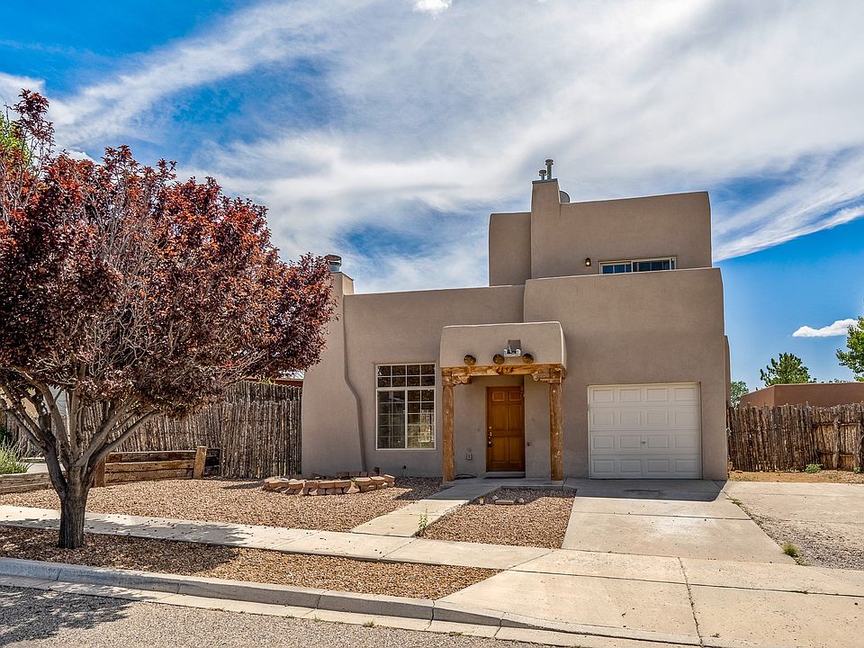 Welcome to this delightful two-story home in the peaceful Nava Ade neighborhood. This charming property features 3 cozy bedrooms, 2 bathrooms, and an attached 1-car garage. The inviting living area features high ceilings and a wall of windows that allow the natural light to flood in. The primary bedroom, located on the main floor, offers direct access to the backyard and a private en-suite bathroom. Upstairs, you'll find two bedrooms, one bathroom and lovely mountain views from the deck. The Nava Ade community center includes a clubhouse with an exercise room, a steam room, a meeting room, an outdoor pool, hot tub, and picnic area. There is also an extensive trail system throughout the community that is part of the larger Chamisos Arroyo Trail that leads towards downtown Santa Fe. Nava Ade is ideally situated near schools, parks, medical facilities, restaurants and shopping centers, making it a true treasure.