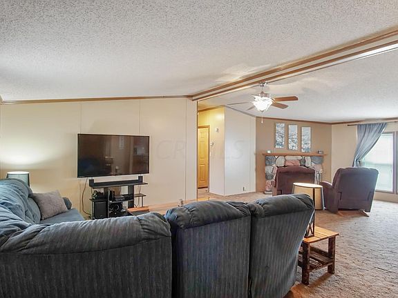 Everything on one floor makes this manufactured home easy to live in. The open living space features a fireplace. 3 bedrooms, all 3 offer walk-in closets and the master has master bath with a soaking tub. Large kitchen with tons of cabinet and counter space. Outside you can enjoy your covered patio. This home has a private driveway that offers 2 off street parking spots. Located close to schools, shopping and convenient freeway access. Columbus address in Hamilton Schools.