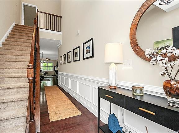 Just in time for spring/summer enjoy the views of the lake everyday! This 3 BEDS / 2.5 BATHS, features an open floor plan, 9 foot ceilings, hardwood floors, crown molding & gas log fireplace in the Great Room. Kitchen equipped w/ dining area, granite countertops, tiled backsplash, SS appliances, & plenty of cabinets for storage. Master Suite includes tray ceilings, extended double vanity w/ granite counters, walk-in closet, glass shower, & soaking tub. The second floor features two additional bedrooms w/ large WIC, private patio overlooking the driveway and a Spacious bonus room. This townhouse has tons of storage. Pool table in bonus room to convey. This Neighborhood is mins to 485, 85, White Water Rafting Center, Charlotte Airport, & Outlet Shops. Short Commute to Uptown