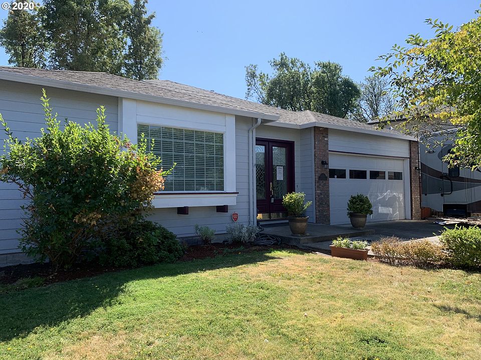 Modern one-level home, desirable Lynnbrook II neighborhood. Private treed backyard and quiet street. Unique floor plan with separation of space, two master bedrooms, both with full bathrooms(total 3 baths) Great for caretaker or extended family set-up! New gorgeous quartz countertops in spacious kitchen, large island, gas range, Stainless Steel Appliances. Bamboo wood floors and tile! Gas fireplace. New HVAC system. Courtyard and covered back patio. Large garage w/ attic storage and opener.