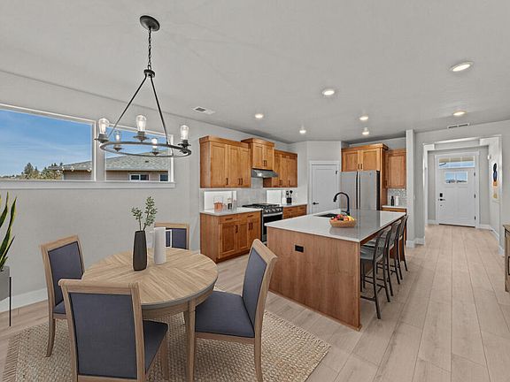 Homesite #57 - $15,000 Buyer Bonus for using builder's Preferred Lender! ''Under Construction'' - single level Wembley floorplan on a 7,500 sf trailside lot. North Trailside, a community of single-family homes nestled in Redmond's thriving southwest district. Enjoy the large great room open kitchen layout leading to a large covered patio in the back also accessed from the primary suite. The primary suite is thoughtfully placed separate from the other bedrooms and the primary bath includes a tile shower and WIC. The kitchen and all bathrooms offer solid Quartz counters and luxury laminate plank flooring throughout. As in all Pahlisch Homes, well-crafted finishes are used throughout. Let the HOA care for your front yard and enjoy all the Redmond OR has to offer. Front yard landscaping, fencing and AC included plus much more. Home is started with an estimated completion in Aug/Sept 2024. Photos are of similar home, specs will vary. Backyard landscaping added.