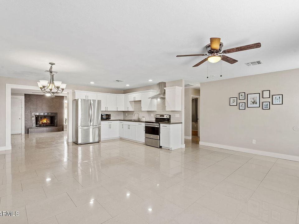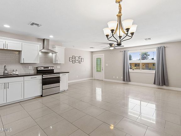 Lovely updated/remodeled 4 bed, 2 bath home. Enter into the Great Room-There is ALSO a Family Room. The following was completed in 2021: Open concept Kitchen with white shaker cabinets, quartz countertops, tile back splash & stainless-steel appliances. Tile flooring throughout the main living areas. Bathrooms have both been updated with new tile, vanities and fixtures. New roof also in 2021. New hot water heater 2025. Kitchen is adjacent to Great Room. Relax by the cozy fireplace in the family room. Convenient Indoor Laundry. Dual pane windows. 1 car carport plus cement slab with room for 4 more vehicles. Big yard ready for your personal touches & imagination to create your own personal, private Arizona retreat. Great Central Phoenix location. Move-in ready.