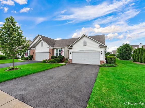 Welcome to your new sanctuary in the heart of Manchester Lakes-a captivating half-duplex ranch home where modern comforts and serene views converge. Nestled on a prime lot overlooking a tranquil pond, this meticulously updated residence offers the perfect blend of peace and convenience, mere minutes from Randall Road's shopping and dining attractions. Step inside to discover an inviting interior adorned with newly installed Anderson windows that flood the space with natural light. All-new Anderson windows and a new sliding glass back door lead to the newly installed patio, ideal for outdoor gatherings or quiet relaxation amid the scenic backyard featuring a Sunsetter awning for added shade and LED-lit deck railing. The kitchen features modern appliances updated five years ago, including under-cabinet lighting for added ambiance. This home features four bedrooms plus a den, providing ample space for a home office or guest accommodations. New ceiling fans throughout and a water softener add to the home's appeal, while a newer sump pump and ample storage space provide practical peace of mind. Imagine evenings spent in the spacious living room by the cozy fireplace, or entertaining guests in the fully finished basement complete with a bar and additional bedrooms. Whether you're admiring the sunset over the pond from the sunroom or enjoying family outings under the awning, this home offers a lifestyle of relaxation and refinement. Don't miss the chance to make this extraordinary property yours. Schedule a showing today and envision yourself living amidst the comfort and serenity this home effortlessly provides.