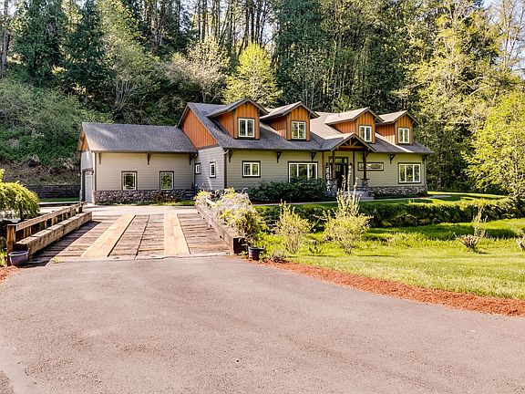 In this custom home, you will find superb craftsmanship and attention to detail throughout. Hand chose McKenzie River Rock flows in and outside the home directing you to the hand milled trim and wood accents taken from the property itself. Enjoy the serene sounds of year-round Forest Creek while sitting on your front porch embracing the beautiful scenery that the McKenzie Valley has to offer. Detached shop w/ second story & RV storage