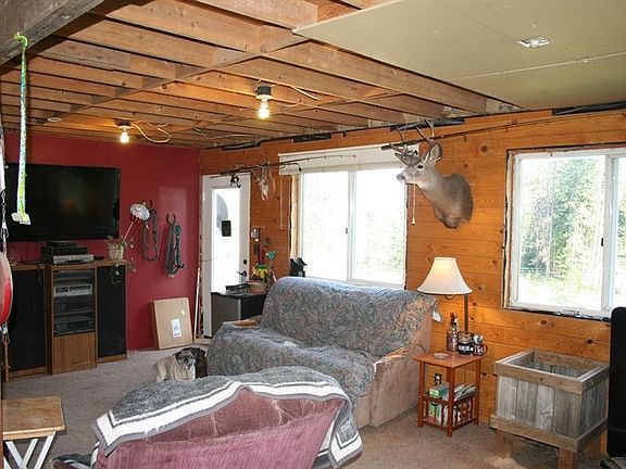 Super secluded location for this 20 acres, unfinished home sits in the opening surrounded by beautiful woods. Hunt from your deck. Horse fencing can stay with good offer. Several outbuildings. Lots of potential here. Straight structure just needs your to finish/wood stove provides most heat to supplement wall electric. Alaska footing. Home is insulated and being lived in.