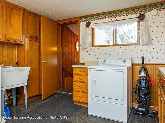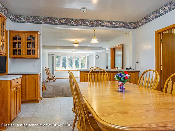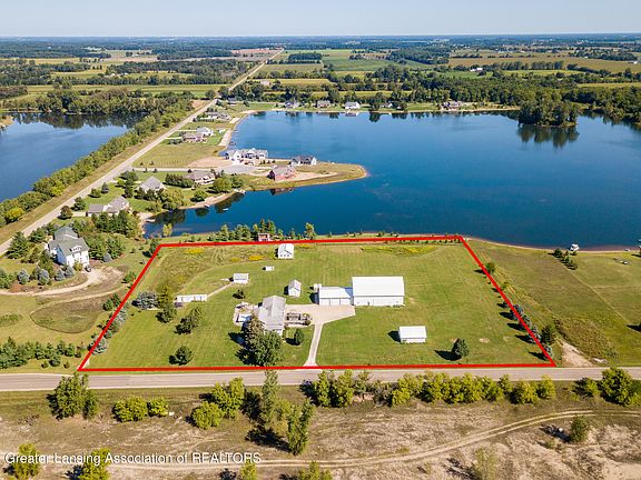 This home has an abundance of storage space and a very nice finished attic. There is a larger barn that was used for draft horses and cattle with a large hay mow and a newer metal roof. Attached to the barn is a large pole barn with electricity, a large lighted oil changing/service pit, air compressor attachments at each garage door and a wood stove. There is a water well located behind the barn/pole barn that can be used for farm animal water supply. The remaining buildings are great for raising animals, storage and workshops. The outbuildings are landscaped with an abundance of rhubarb that flourishes each spring. The possibilities are endless with this beautiful setting over looking the lake. There may be the possibility of a lot split.
