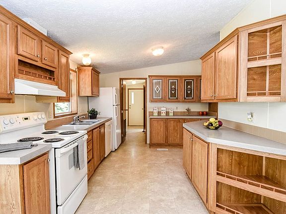 The freshly painted interior makes this 3 bedroom, 2 full bath manufactured home ready for new owners. Sitting on a block crawlspace foundation, this home offers vaulted ceilings, open concept living and dining room, a spacious kitchen with numerous cabinets and plenty of counter-top space. The split bedroom plan provides privacy for the master suite with its own bathroom and walk-in closet. The living room and all bedrooms feature laminate flooring. All appliances plus washer and dryer are included. The lot is almost 1/2 acre and includes a large 16x16 shed with overhead door. There is plenty of space to add a garage, have a garden and more! Schedule your appt. today.