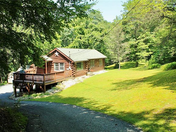 Cozy LOG HOME sits on 3.68 PRIVATE ACRES surrounded by woods. Located just ¼ mile to Appalachian Trail, and minutes to Fishing & Blue Mt Ski Resort [Skiing, Bike trails, zip lines]! Home features an updated Kitchen with stainless appliances & granite counters. Open Living room/ Dining area has cathedral ceiling, exposed logs and lots of natural light. 3 bedrooms have exposed logs & laminate floors. Main bath w/ updated features. Entertain on the large deck & enjoy the abundant wildlife. Lower level offers an office & large family room w/ built-in bookcase, laundry room & full bath. Wood stove will heat the whole house. 1 car garage. Large chicken coop for fresh eggs. 350 acres of State game lands back up to this community. Come Enjoy the quite life!