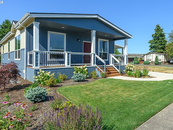 Discover modern comfort and effortless living in this brand new manufactured home nestled in a desirable 55+ community. This light-filled residence exudes contemporary charm with its high ceilings and open floor plan, offering 1404 sqft of spacious living space. Step inside to find a beautifully appointed interior highlighted by sleek stainless steel appliances and a stylish kitchen island, perfect for culinary enthusiasts and casual dining alike. The expansive windows flood the living area with natural light, creating a warm and inviting atmosphere throughout.The Primary Suite provides a peaceful retreat with its generous proportions and walk-in closet and ensuite bathroom. Two additional bedrooms offer flexibility for guests or hobbies, ensuring ample space for every need.Some of the amenities of the park include pool, clubhouse, playground, picnic area and sports court. Conveniently located near Hwy 18, just a couple of minutes from Historic Downtown McMinnville.
