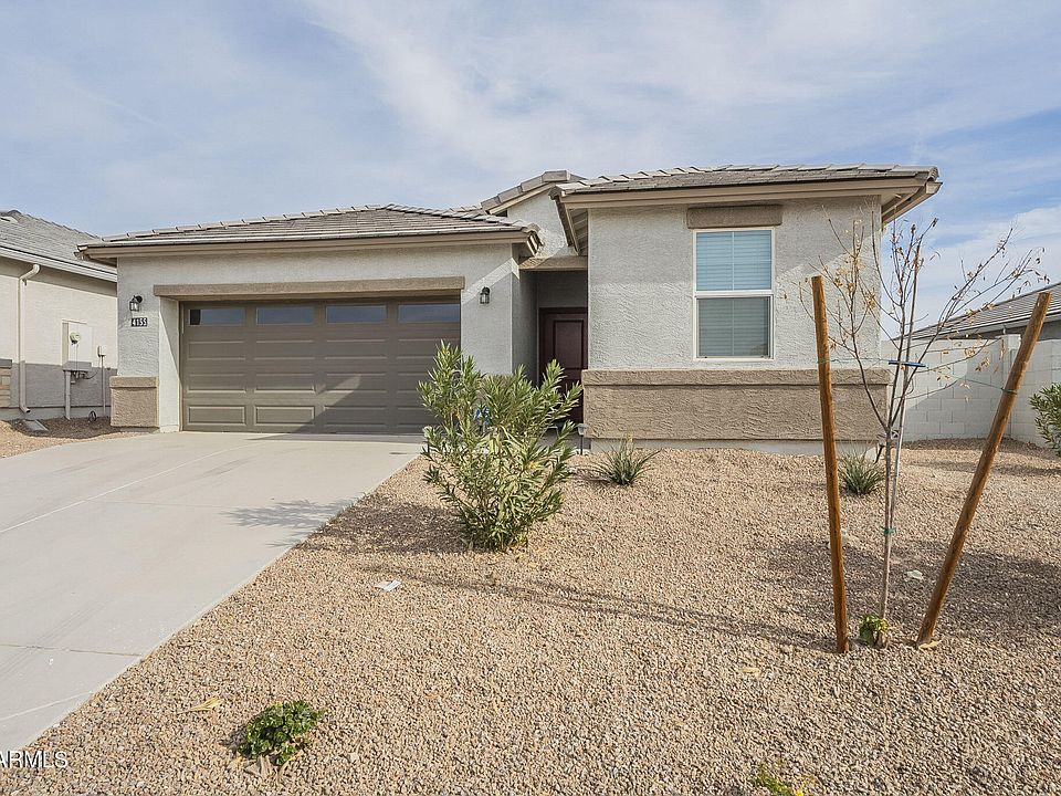 Newer smart home in nice Buckeye community. This home boasts 3 bedrooms and 2 bathrooms on an oversized lot. PAID OFF SOLAR for significantly lower utility bills for the years to come. Comes with a fully equipped kitchen with stainless steel appliances, granite counters, pantry and open concept to great room. The primary bedroom is split and features a large a walk-in closet. Mostly tile floors with carpet in the bedrooms. You can control your front door lock, alarm and thermostat from your phone. The laundry room is inside and comes with the washer and dryer. Plenty of room in back yard for installing a pool or whatever your heart desires. A must see!